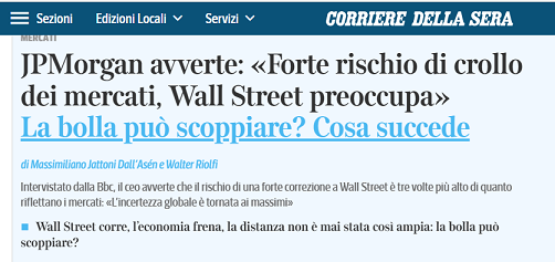 Ma oggi, il tono è cambiato: devono proprio avere raschiato il fondo del barile, e non hanno trovato più nulla per illudere il pubblico di massa che “la Borsa sale sempre”.